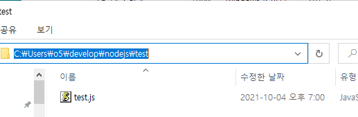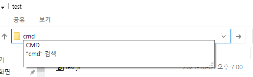 방금 저장한 파일 위치에서 파일 탐색기 주소창에 cmd라고 입력하고 엔터를 쳐준다.