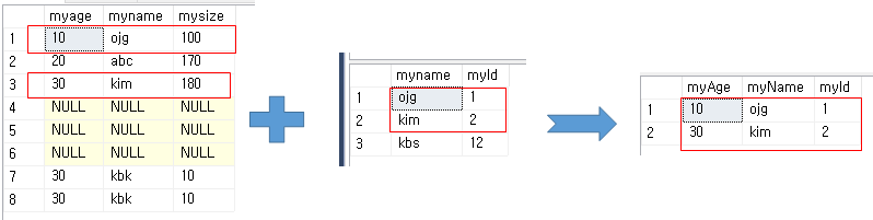 SELECT a.myAge, a.myName, b.myId FROM mytable AS a INNER JOIN testtable AS b on a.myname = b.myname