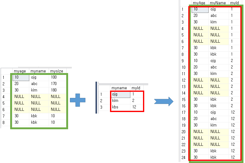 -- SELECT [별칭.필드1], [별칭.필드2]... FROM [Table 이름] AS [별칭] CROSS JOIN [Table 이름] AS [별칭]