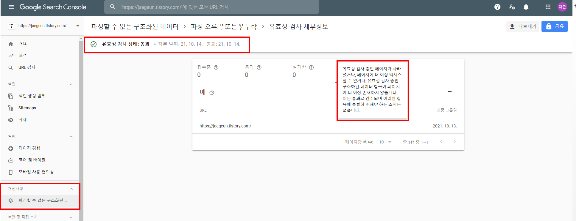 블로그 검색 노출을 위해 Google Search Console에 수집 요청을 하고 있는데, 파싱 오류라는 리포트가 생성됐다.