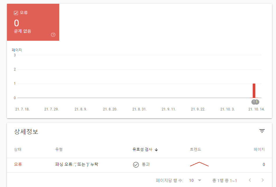 하루 이틀 뒤에 확인해보니 오류는 사라졌다.