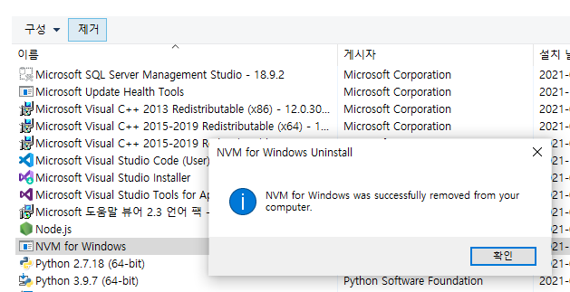 먼저 기존에 설치되어 있는 NVM부터 제거를 해주자.