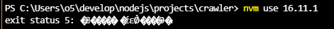 맥에서는 발생하지 않는데 윈도우 PC에서는 NVM 사용 시 exit staus 5 에러가 발생하고 있었다.