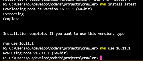 그러면 아래처럼 nvm use 명령어가 정상 작동하는 것을 볼 수 있습니다.