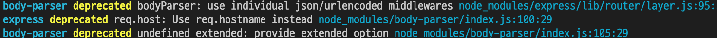 예전에 사용된 body-parser 모듈은 deprecated 되었기에 경고가 뜨기에 body-parser 모듈 사용은 지양하자.